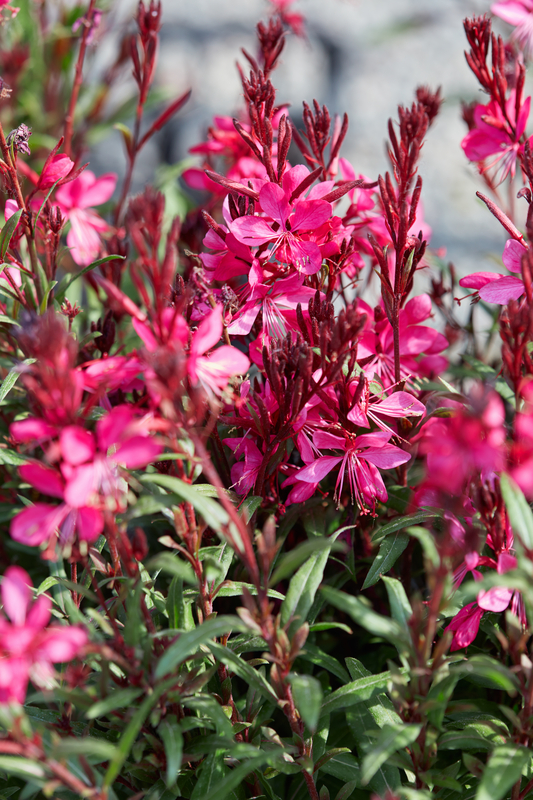 Gaura thrives in well-draining soil, so make sure to prepare the planting area by adding organic matter such as compost or well-rotted manure or in a container use a good quality soilless mix. Choose a sunny location in your garden that receives at least six hours of direct sunlight per day.
