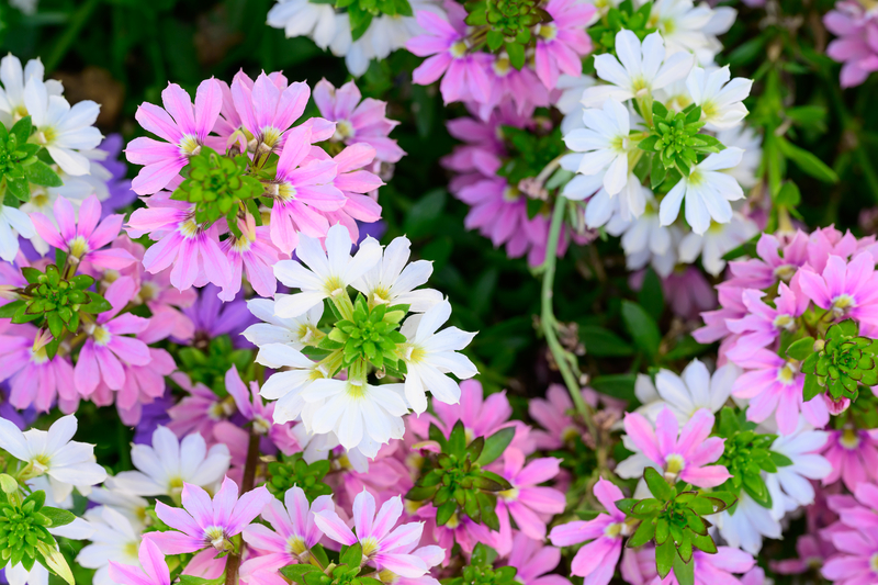 Scaevola is also known as fan flower because the bracts of flowers look like little fans. This flower from Australia is one of our favourites for hot sunny plantings. It takes the heat and is fairly drought tolerant. It also blooms non-stop throughout the summer and requires very little care. It looks great in containers or baskets.