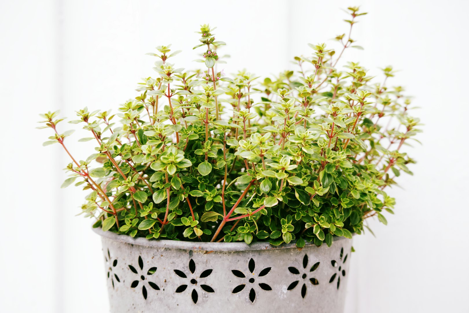 Variegated Lemon Thyme: Lemony scent and flavour. Variegated foliage makes this plant very decorative as well. This herb often overwinters in Manitoba.